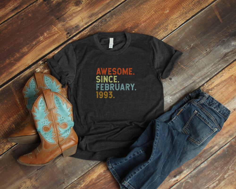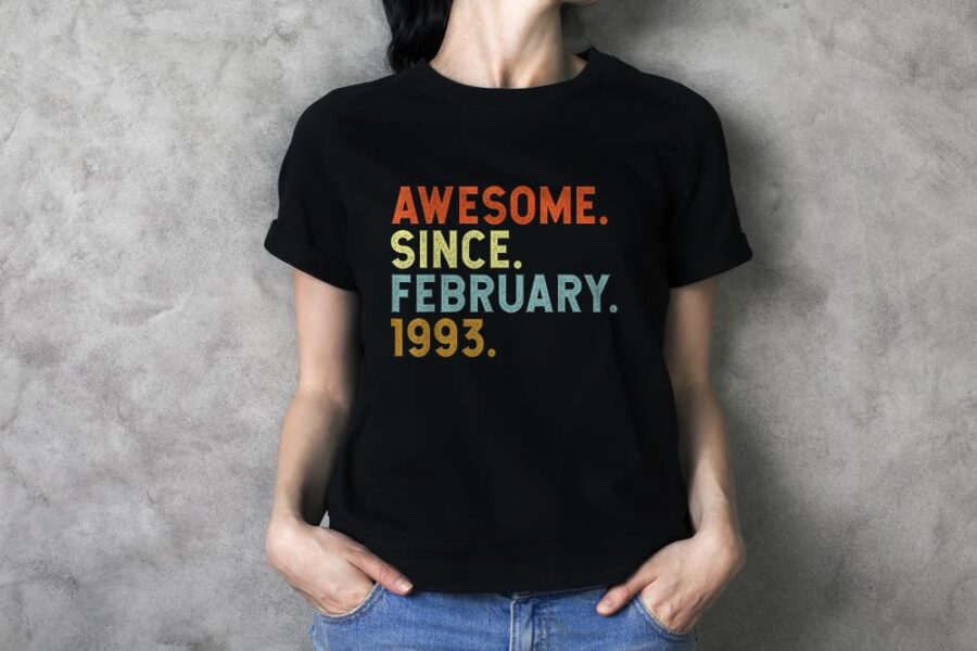 Celebrate your 30th birthday in style with our “30 Years Old Awesome Since February 1993” t-shirt! Made from high-quality materials and featuring a unique design, this shirt is the perfect way to showcase your awesomeness on your special day. Shop now and make your birthday one to remember!