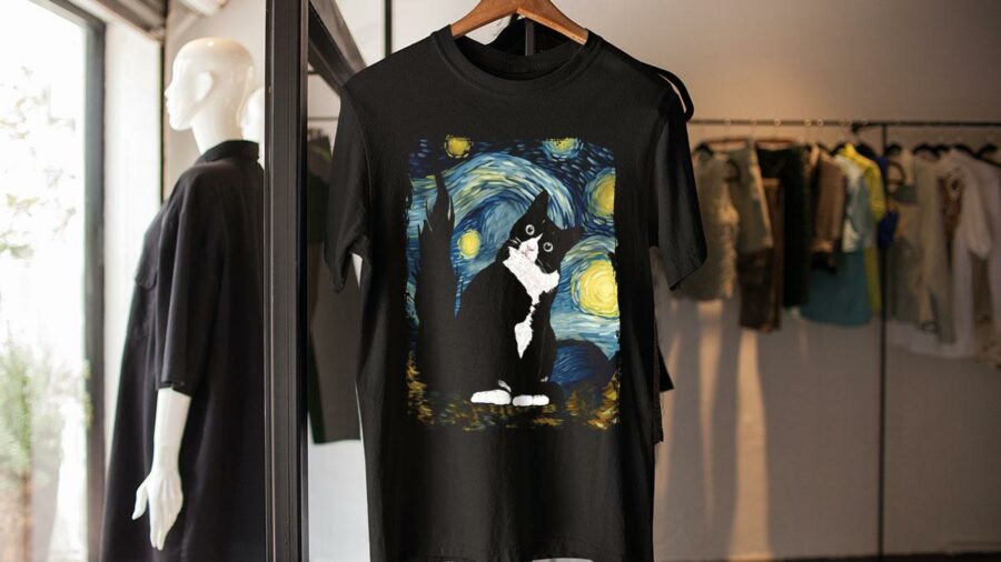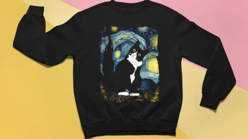 Transform your wardrobe with our custom-printed t-shirt featuring “Cat Painting The Starry Night” by Vincent Van Gogh. Unique design, high-quality material, and affordable price. Shop now and express your creativity!