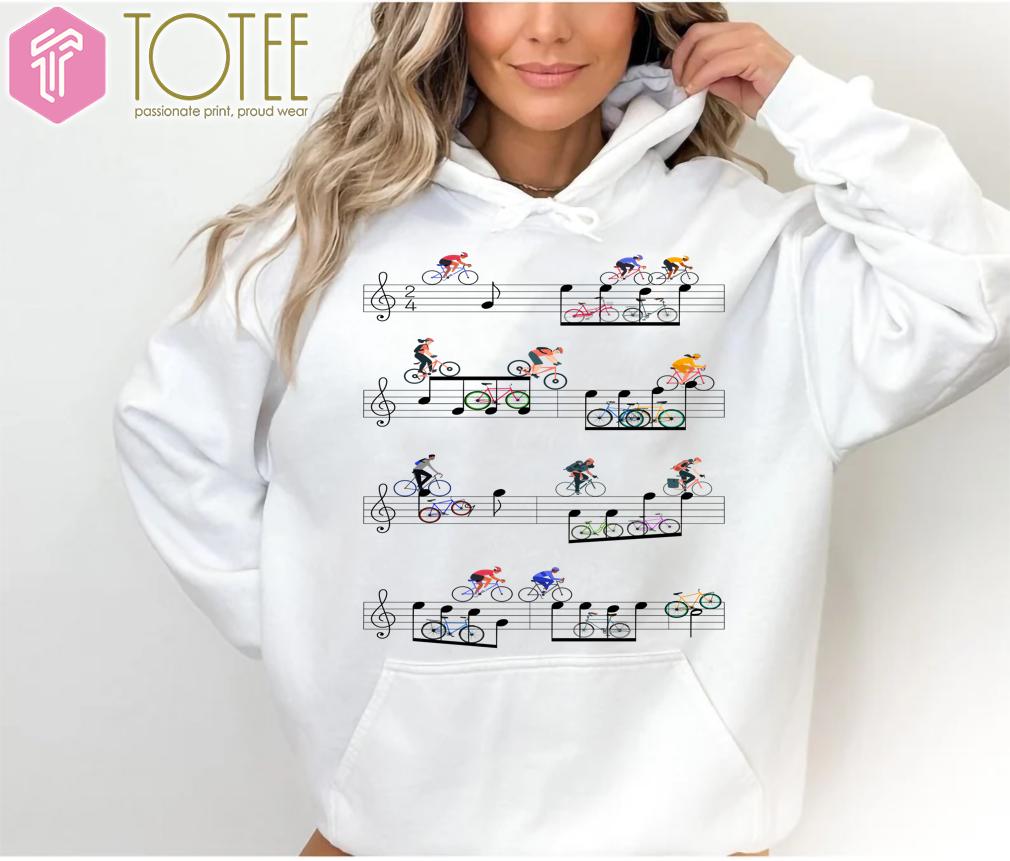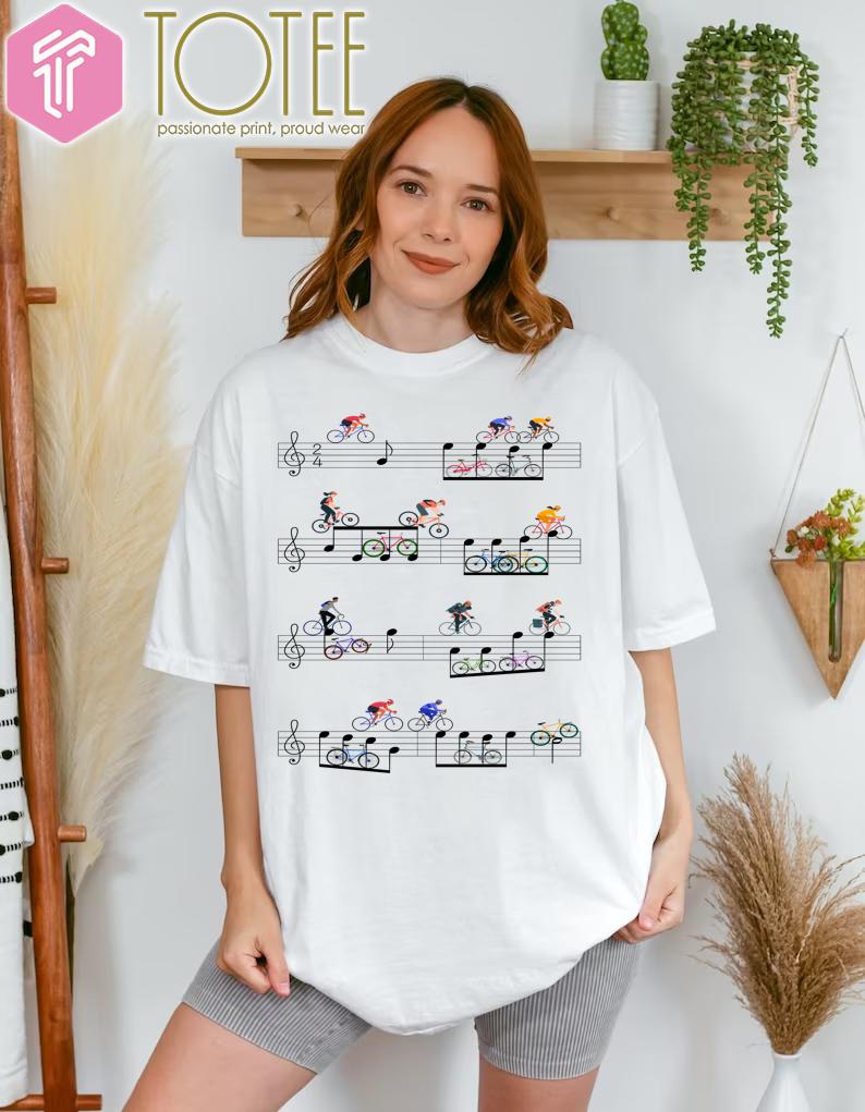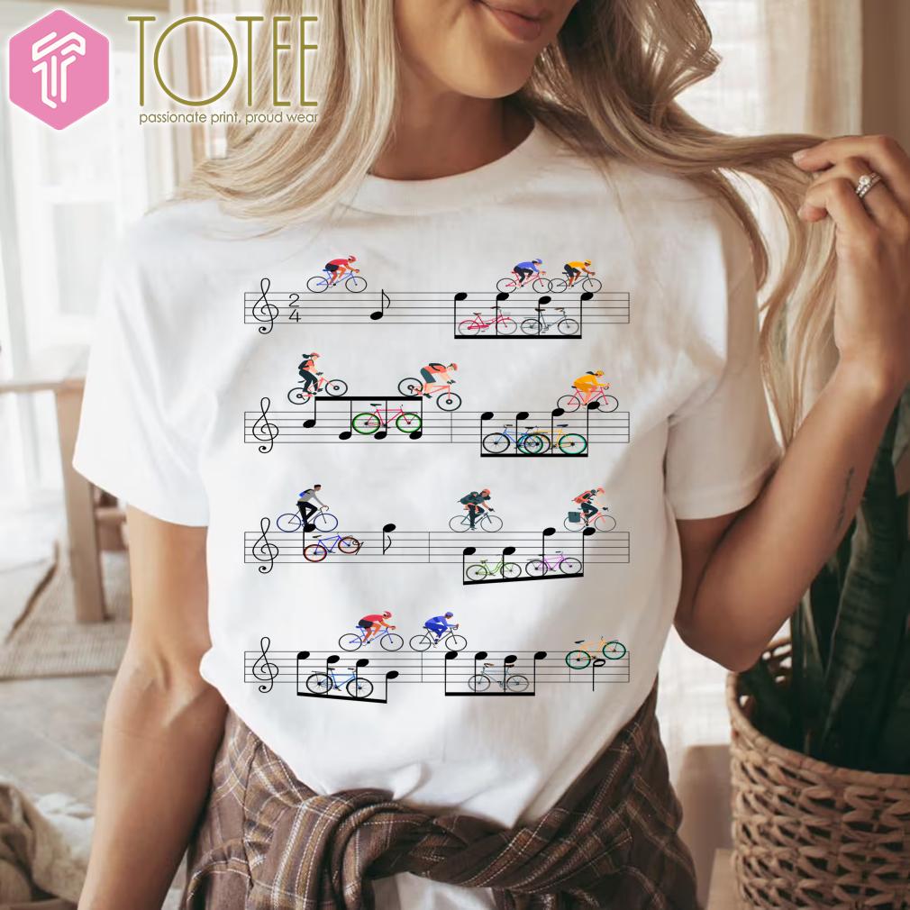 Shop our exclusive Cycling Music Note t-shirt collection. Express your passion for cycling and music with our custom-printed designs. Perfect for any cycling enthusiast.