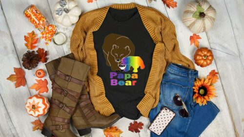 Celebrate Father’s Day with our custom-printed t-shirts! Show your support for the LGBT community with our Papa Bear Rainbow design. Order now for a truly unique and meaningful gift.
